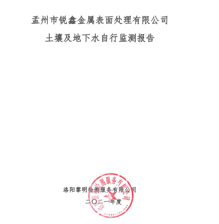 孟州市銳鑫金屬表面處理有限公司土壤及地下水自行監(jiān)測報告