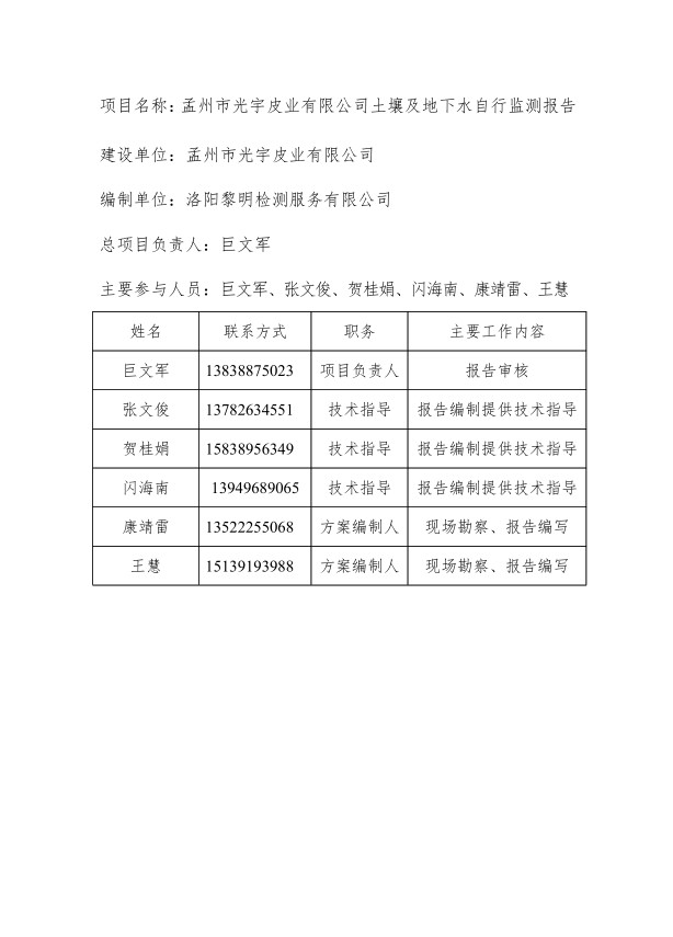 孟州市光宇皮業(yè)有限公司土壤及地下水自行監(jiān)測(cè)報(bào)告